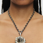 Hibiscus Flower, hand-designed and created by us. We spent hours perfecting the shape, creating a three dimensional hollow hibiscus pendant paired with our handmade chain. Wear it with or without the pendant for versatile styling.
