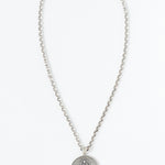 An 18-inch sterling silver box chain necklace featuring a Virgin Mary pendant with delicate floral etching. Thoughtfully crafted to highlight fine detail, this piece carries both elegance and symbolism. Its timeless design makes it perfect for layering or wearing on its own as a meaningful everyday piece.