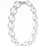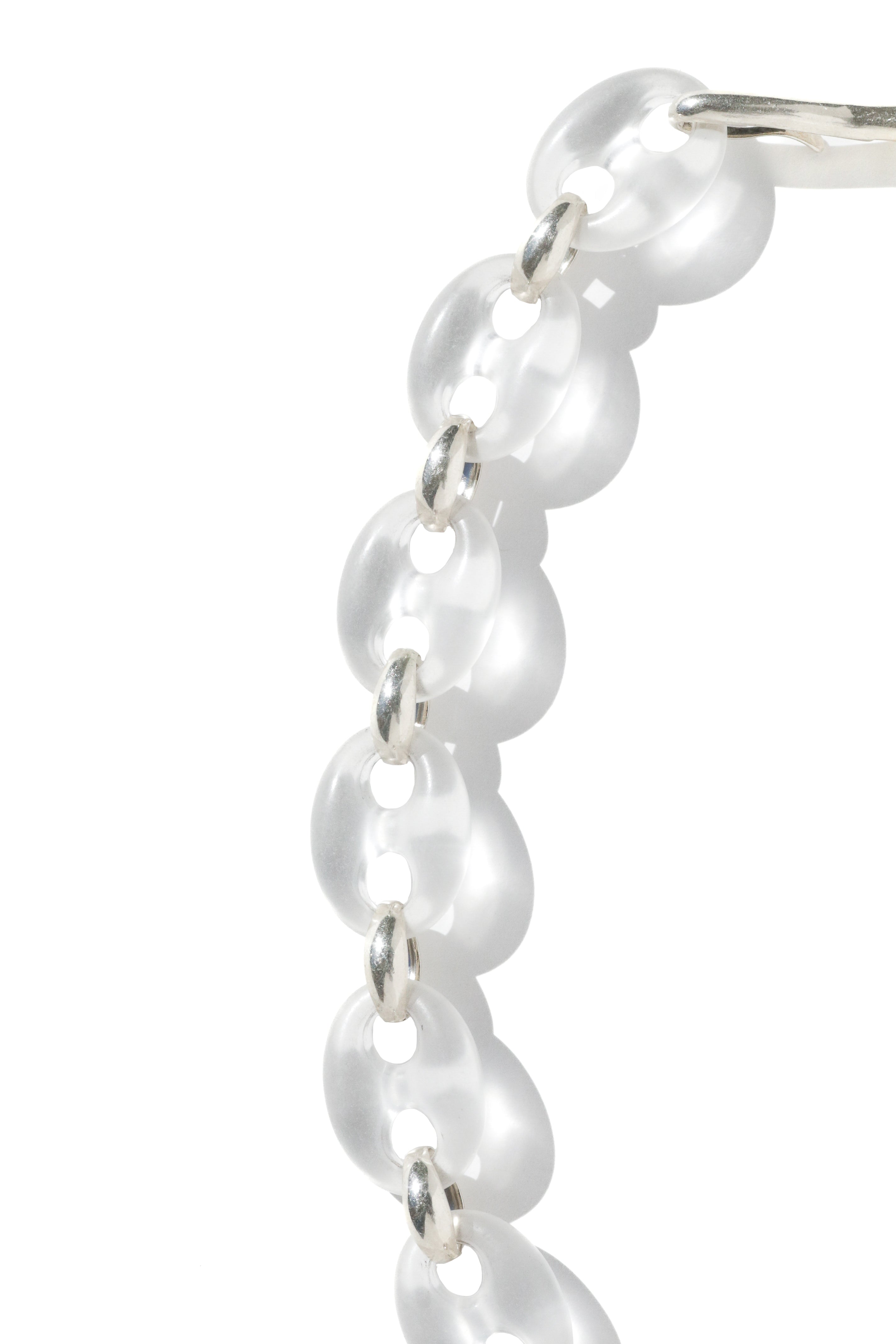 The Soet Necklace features clear resin puffed mariner beads, each linked with sterling silver jump rings and finished with a sleek hook clasp. Designed as a bold yet refined statement piece, it balances modern elegance with sculptural detail.