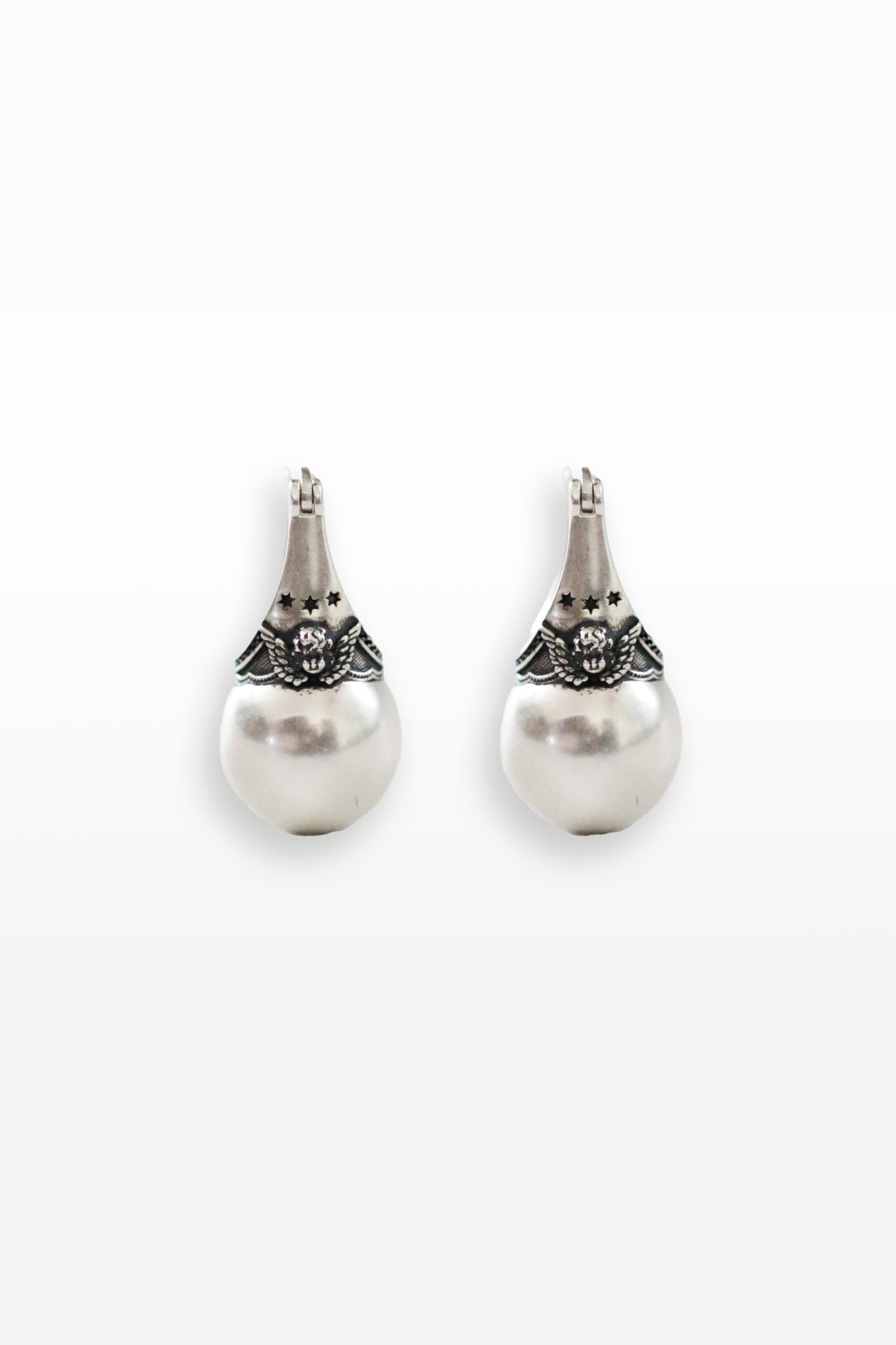 Cherub Minis, handcrafted by us. We designed these detailed earrings to be lightweight yet appear chunky to the eye. Each earring features a 3D cherub design delicately paired with three stars and Victorian inspired embroidery.
