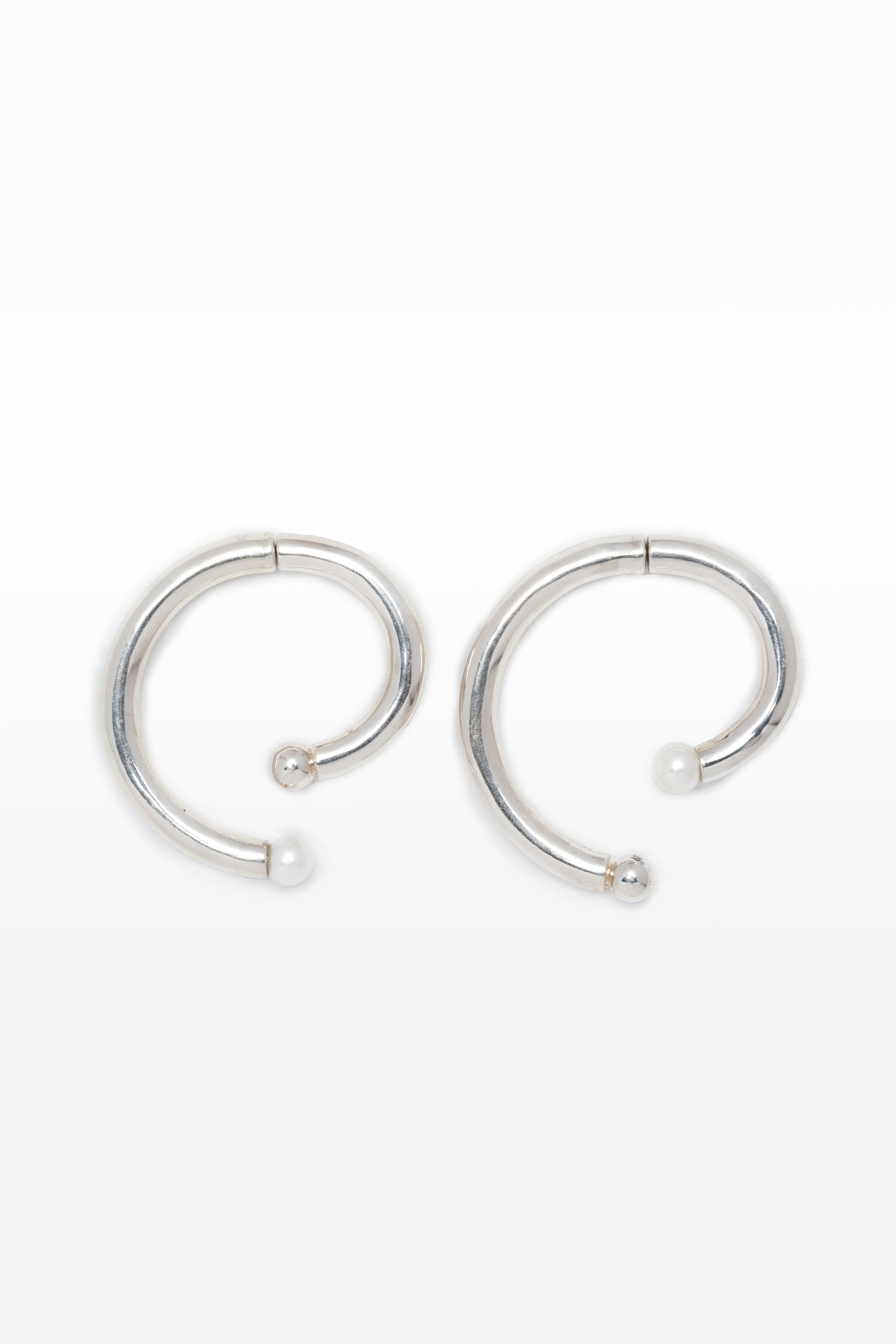Swirl Pearl Earrings, hand-designed and crafted by us, featuring genuine freshwater pearls. These versatile sterling silver pearl earrings offer interchangeable styling options.