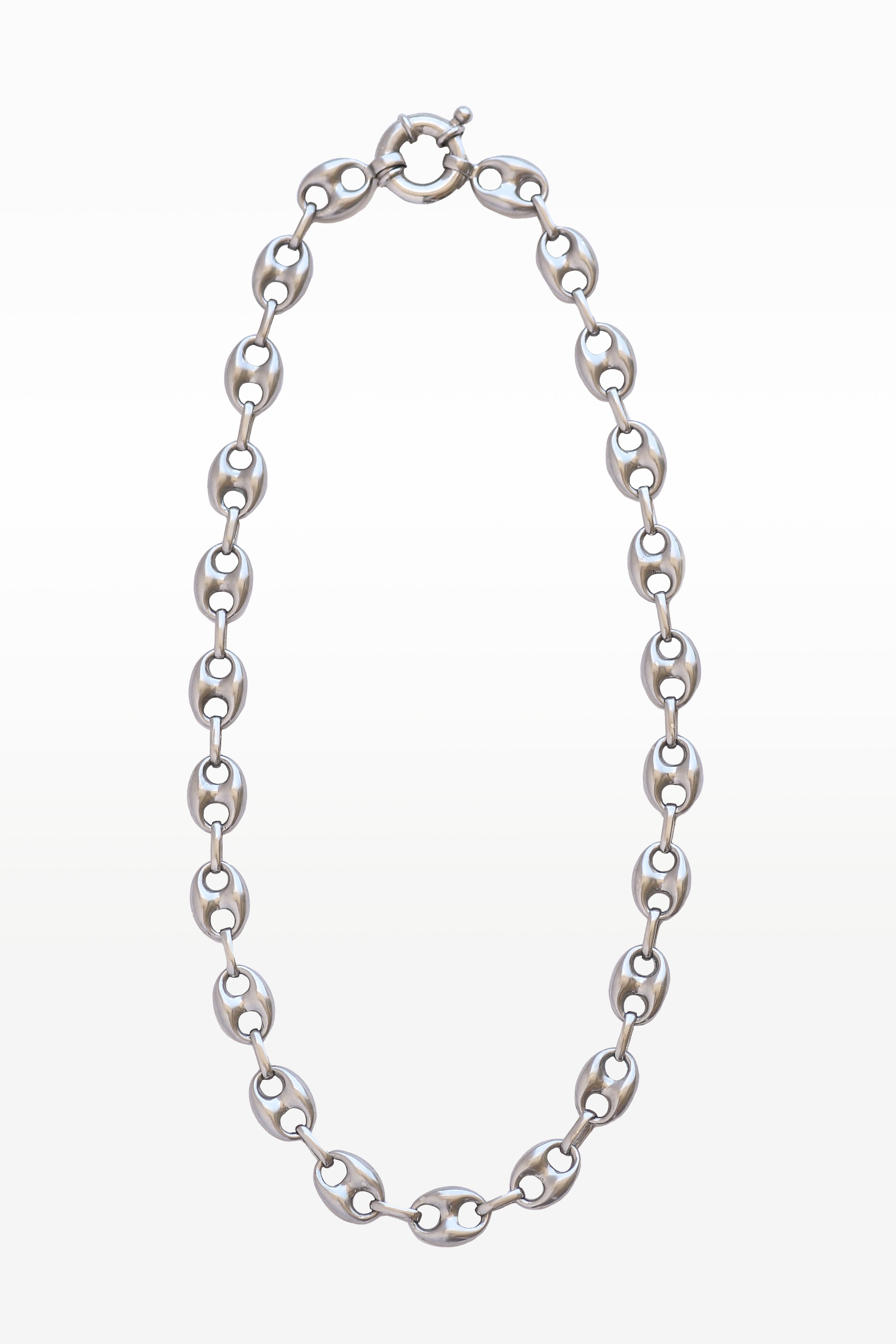 The Lekker Necklace is a unisex 20-inch puffed mariner link chain, secured with a circular bolt clasp. Handmade in sterling silver, this bold yet versatile piece stands out on its own or layers seamlessly with other styles, making it perfect for everyday wear or special occasions. Each mariner link has been carefully perfected to give dimension and depth, ensuring the design feels substantial rather than flat.