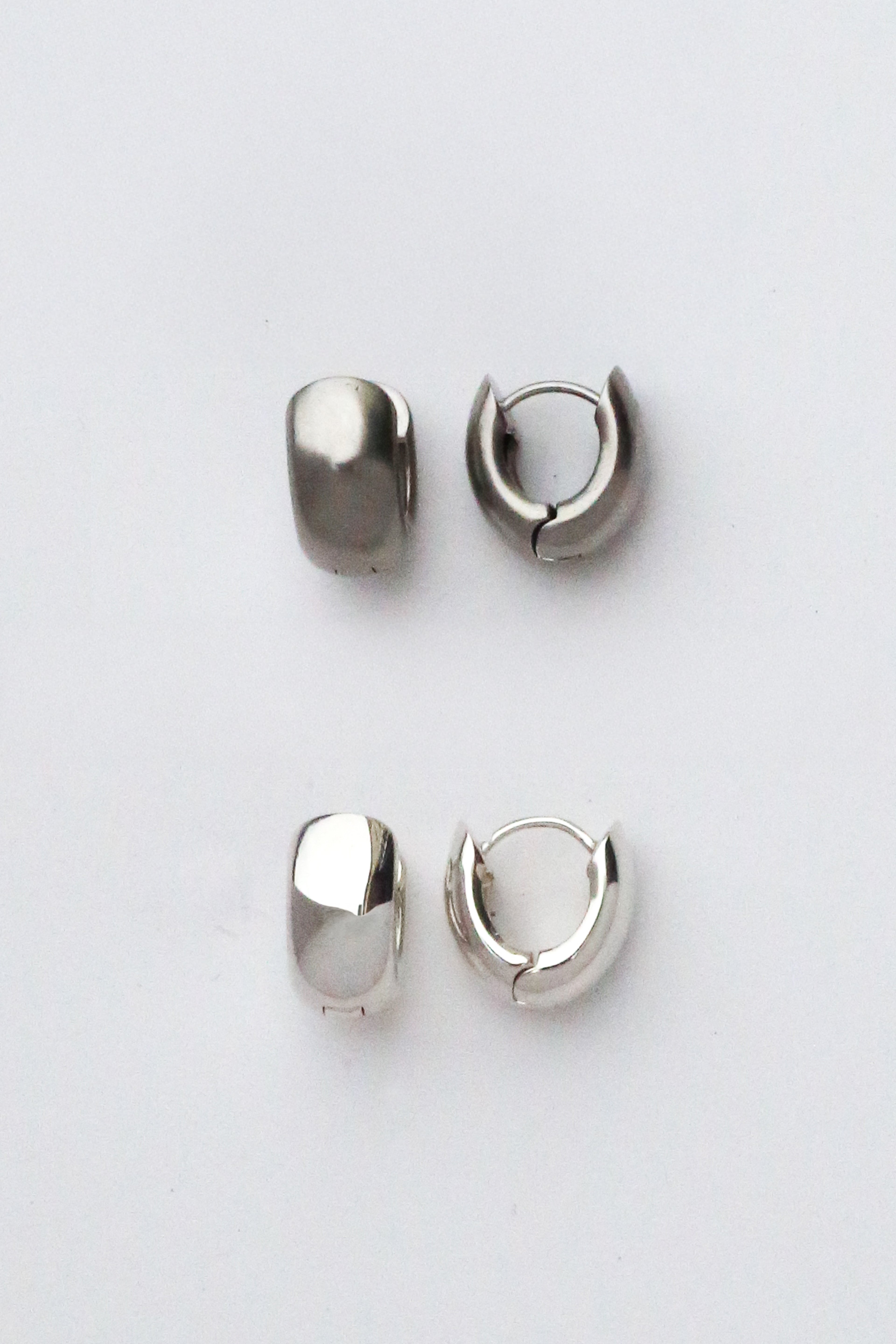 The Mini Puffs, hand designed and created by us. We created the Mini Puff to give the illusion of a thick mini hoop without adding extra weight. Perfect for stacking or wearing alone, these sterling silver mini hoops combine style and comfort effortlessly.