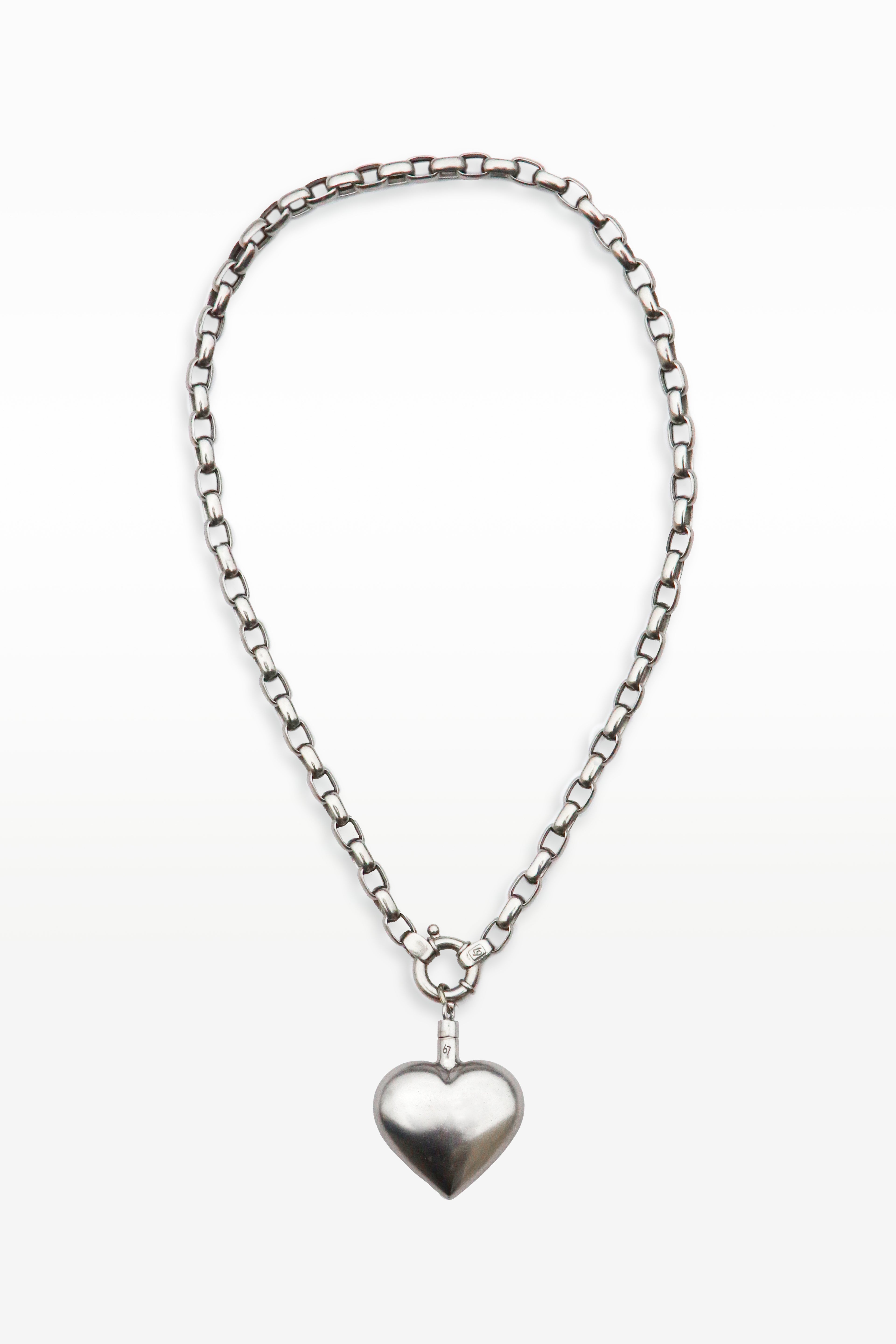 Our best selling Hollow Heart Necklace features a unique design that unscrews to hold perfume, ashes, or other small keepsakes. We have paired this customer favorite with a new chunkier handmade chain that can be worn with or without the charm. This sterling silver necklace is perfect for layering or wearing on its own and makes a meaningful statement for everyday wear.