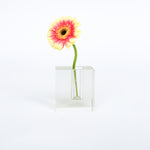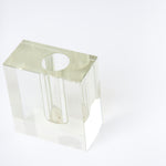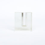 Vintage Crystal Square Vase features a sleek, modern square shape perfect for holding a single stem. Multiple small dings throughout add character and vintage charm, making each piece truly one-of-a-kind. Ideal as a minimal accent or to showcase a favorite bloom.