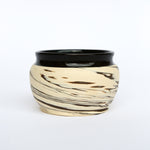 Vintage Ceramic Bowl features a striking black-and-white twirl glaze that creates a dynamic, marbled effect. Its rounded form and artisanal finish make it a unique piece, perfect for serving or as a decorative accent in any space.