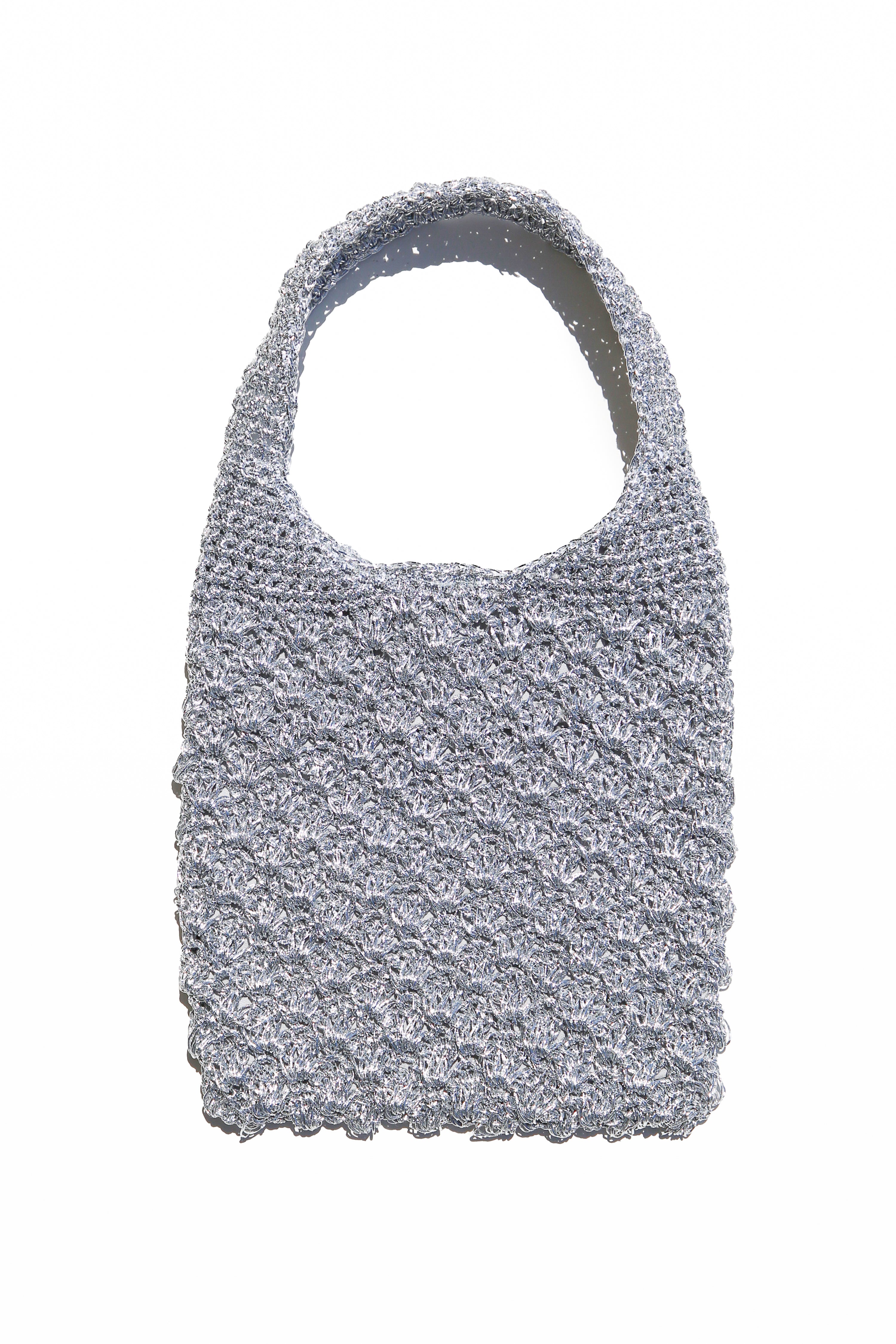 The Summer Bag is handwoven from lightweight metallic yarn, giving the appearance of metal without the added weight. Designed for everyday wear, this small shoulder bag features our signature puffed star charm, making it both stylish and functional. Each piece is handmade, so slight variations and imperfections add to its unique character.