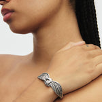 Our first design to come to life after a year of perfecting, the Eagle Bracelet features bendable wings that can easily be molded to your wrist. Once shaped to your preference, it feels effortless to wear, combining bold design with ultimate comfort. Handmade in sterling silver with a thick 18k gold vermeil layer, this bracelet offers durability, elegance, and a statement look that lasts.