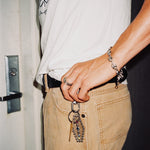 This keychain features five vibrant gemstones linked to a sturdy keychain ring, creating a colorful and eye-catching accessory. Handmade with care, it combines practicality with bold style, making it perfect for everyday use or as a thoughtful gift.