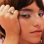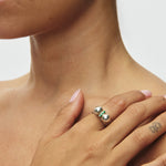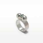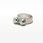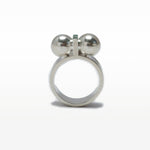 The Ball Ring is hand-designed and created by us, inspired by a vintage ring discovered in an antique shop in South Africa. Crafted in sterling silver and set with three green quartz stones, this unique ring blends classic elegance with modern style. Available in multiple sizes, including custom sizing, it makes a versatile statement piece for everyday wear or special occasions.