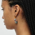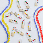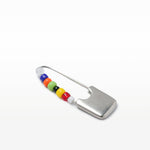 Beaded Safety Pin Earring, hand-designed and created by us. Each earring is unique, featuring a vibrant mix of colorful seed beads. Inspired by our South African heritage, these sterling silver safety pin earrings draw from the tradition of incorporating seed bead designs into African clothing and jewelry. A playful, statement-making accessory that is perfect for everyday wear.