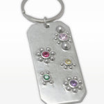 This keychain features five vibrant gemstones linked to a sturdy keychain ring, creating a colorful and eye-catching accessory. Handmade with care, it combines practicality with bold style, making it perfect for everyday use or as a thoughtful gift.